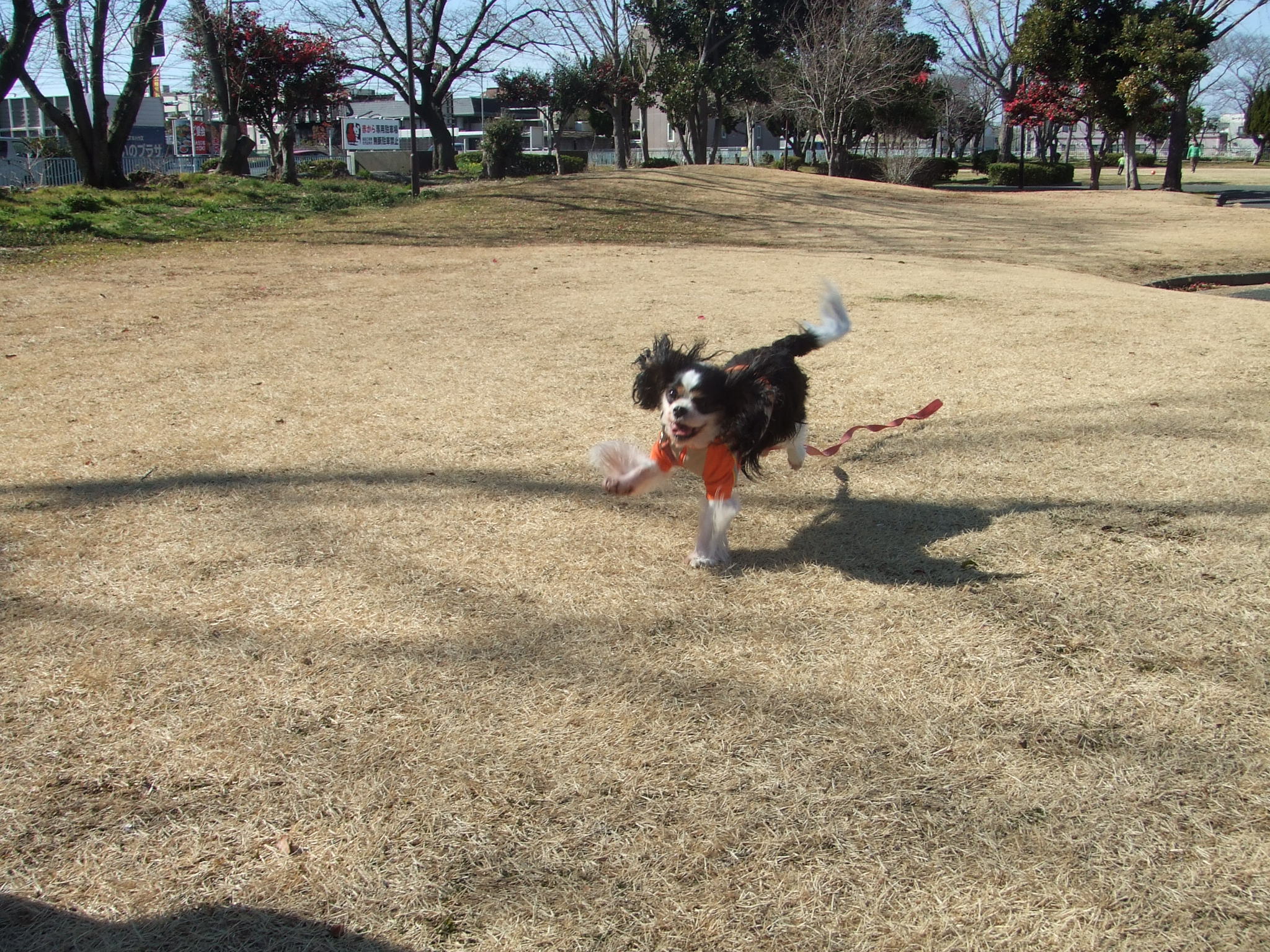 公園で少しリードを離しても、一定距離以上は離れようとしません。