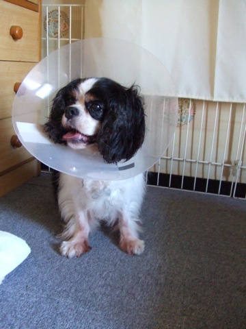 エリザベスカラーを付けた姿が、中世イングランドの女王であるエリザベス一世に