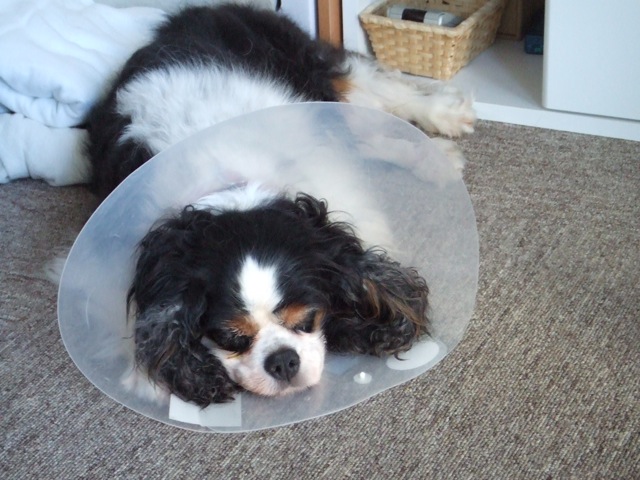 ↑エリザベスカラーを嫌がる風もない雛さま。
